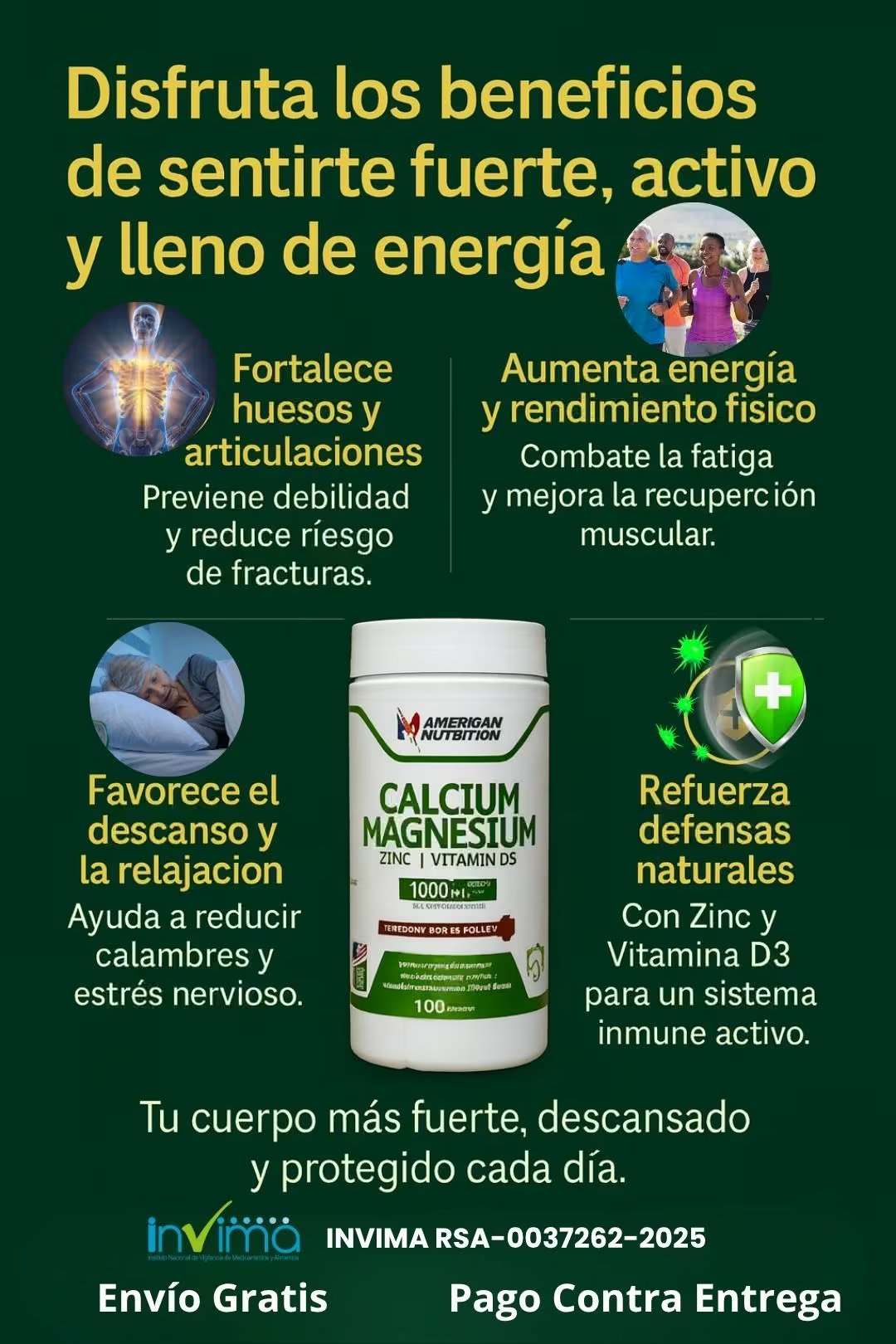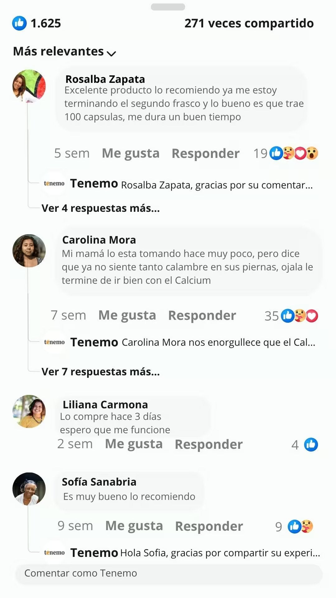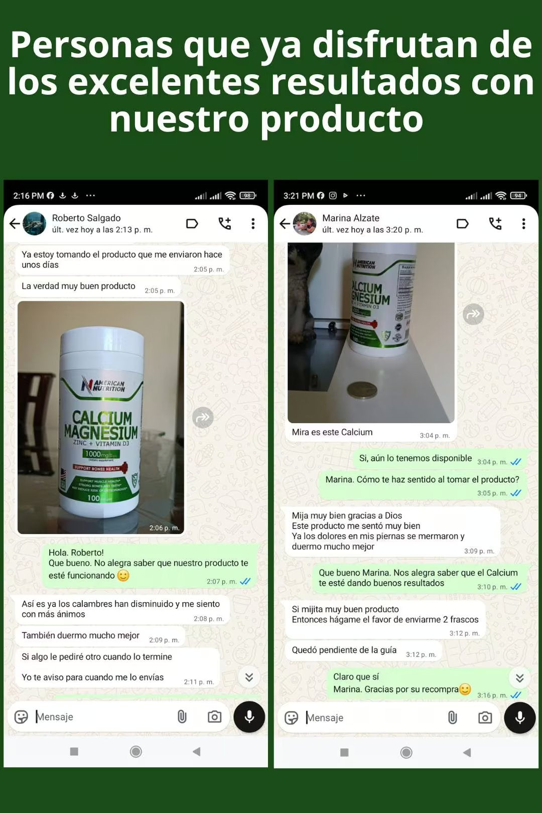 "Desde que empecé con el Calcio + Magnesio siento más energía durante el día y mis calambres desaparecieron. Me siento muy tranquila y más activa."