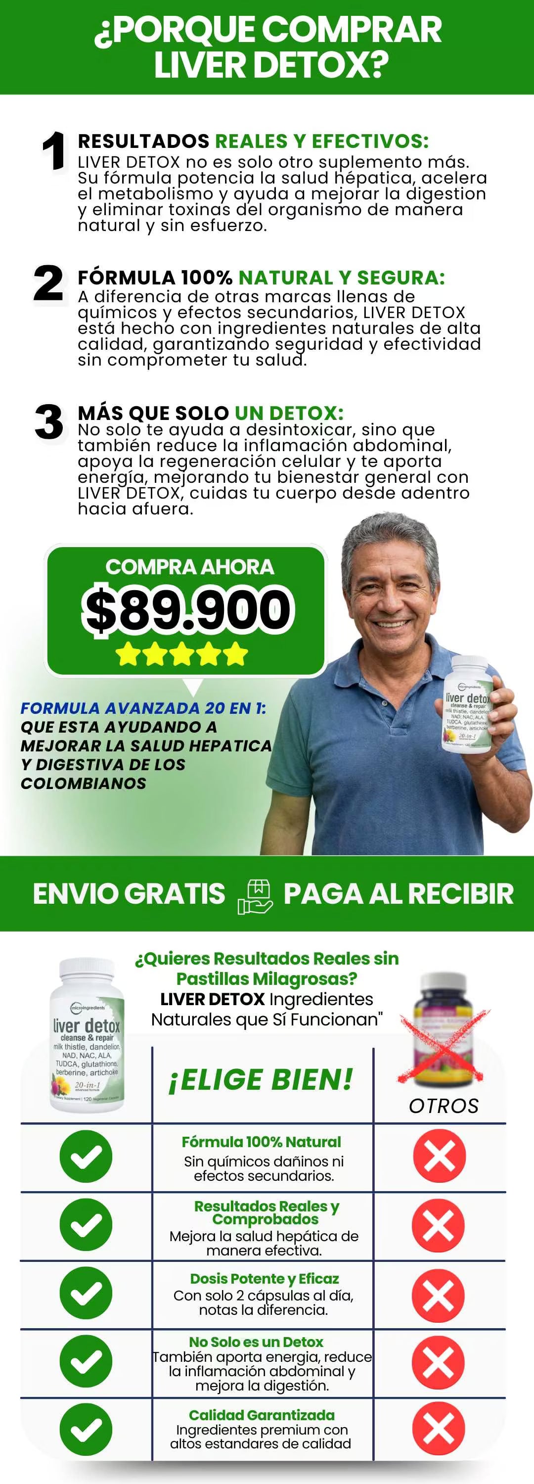 Está diseñado para adultos que buscan apoyar la función hepática, mejorar la digestión y sentirse con más energía en su día a día, especialmente si llevan un estilo de vida exigente.