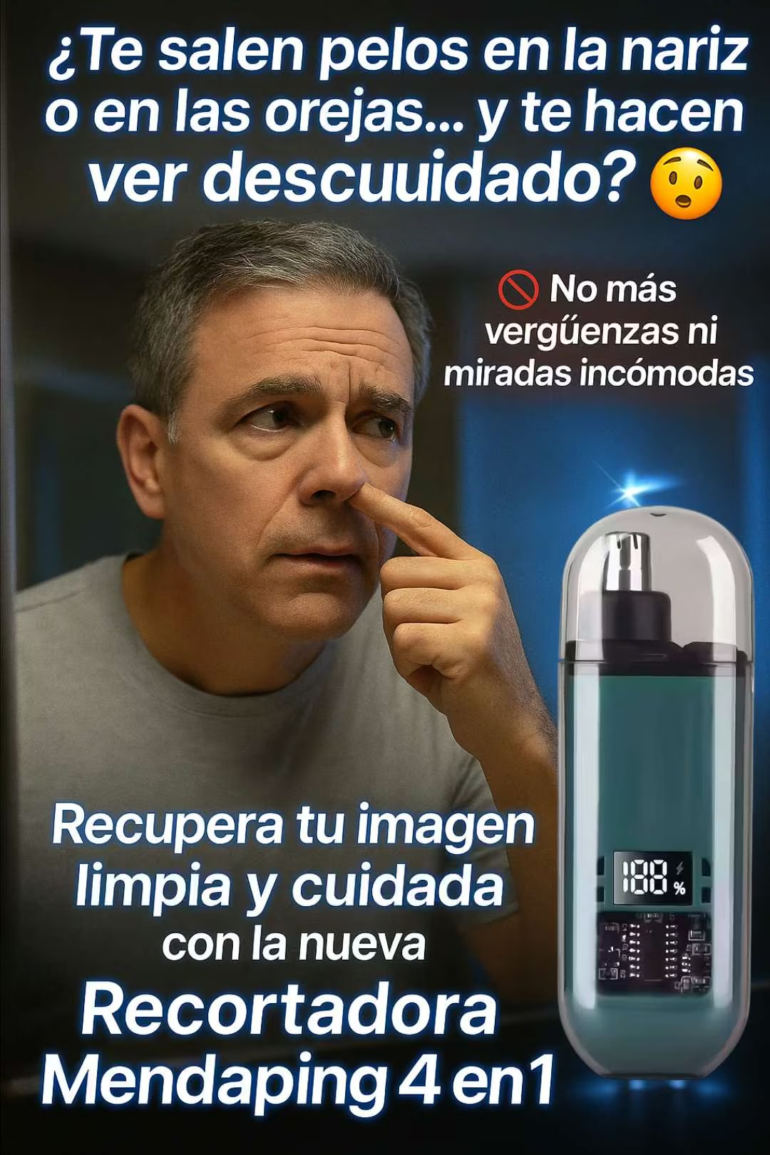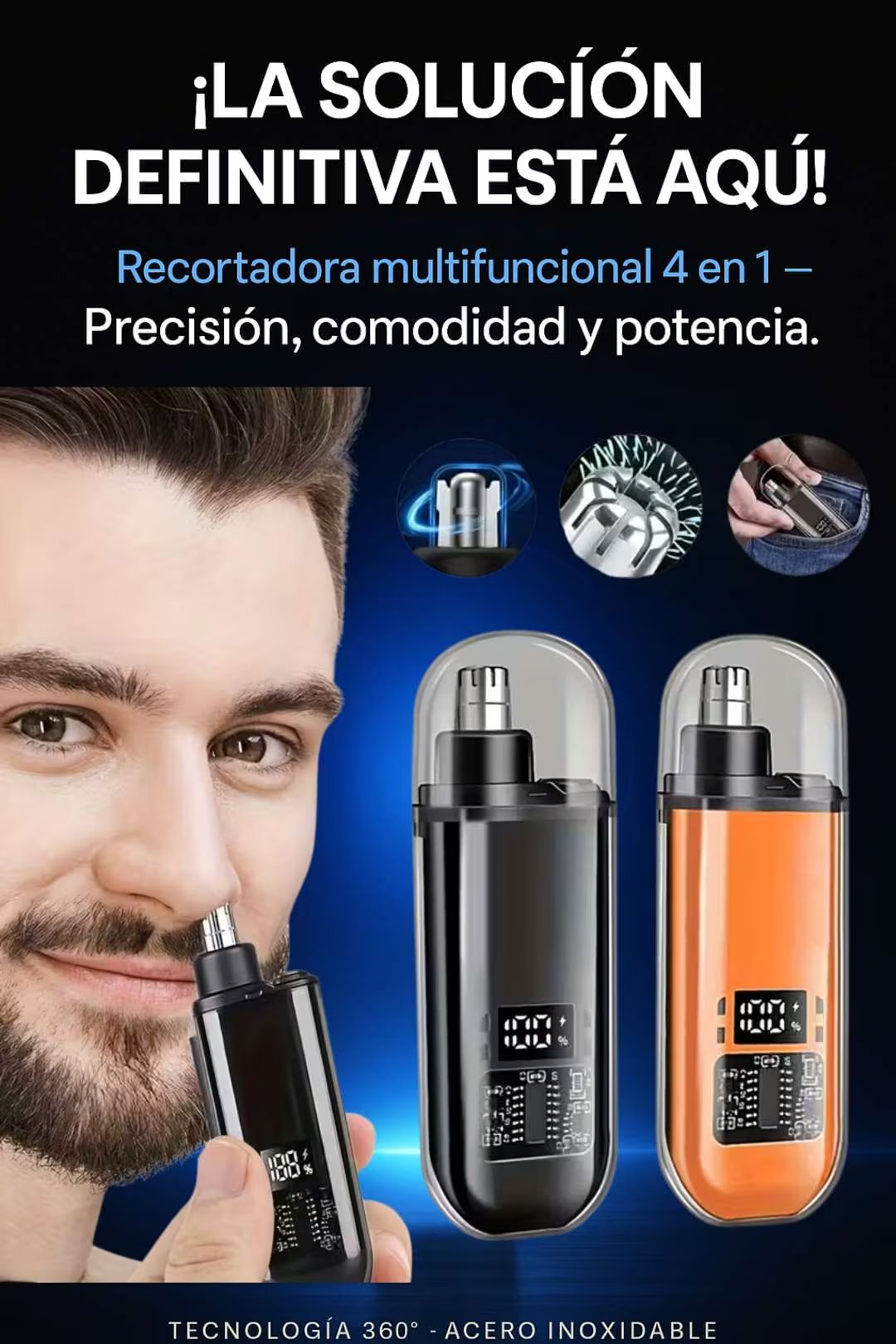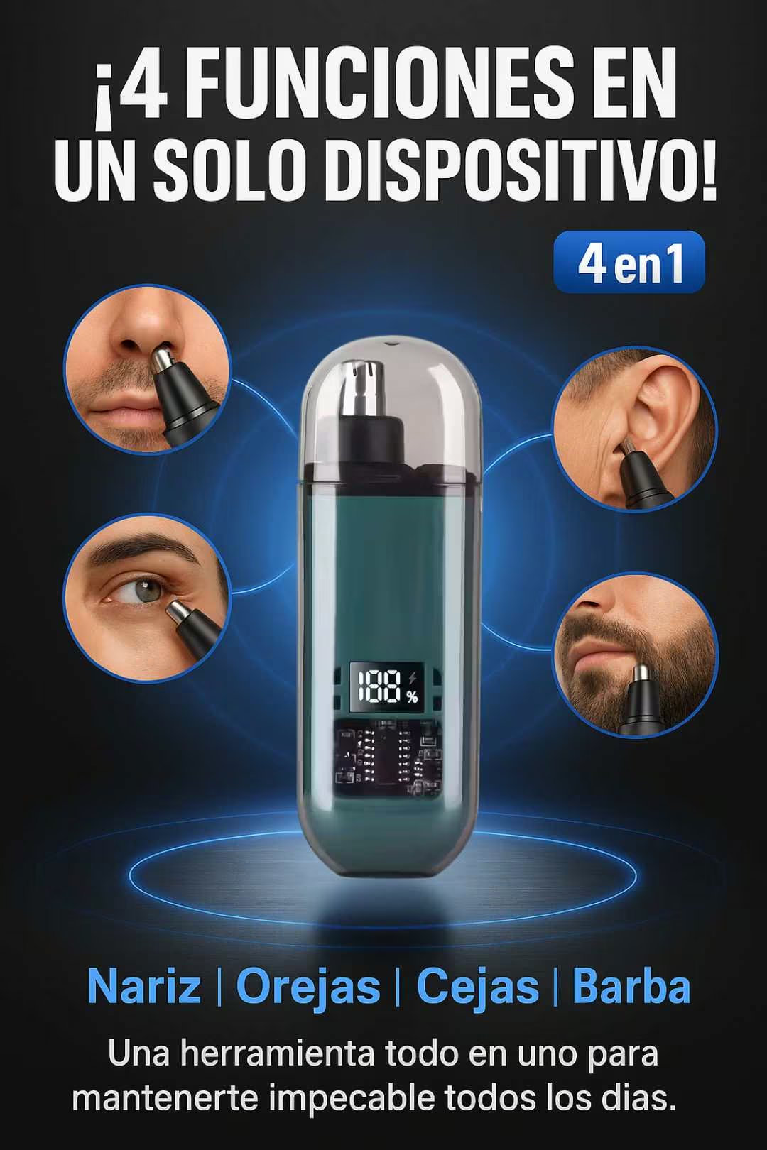 Es 4 en 1: nariz, orejas, cejas y retoques de barba/bigote.